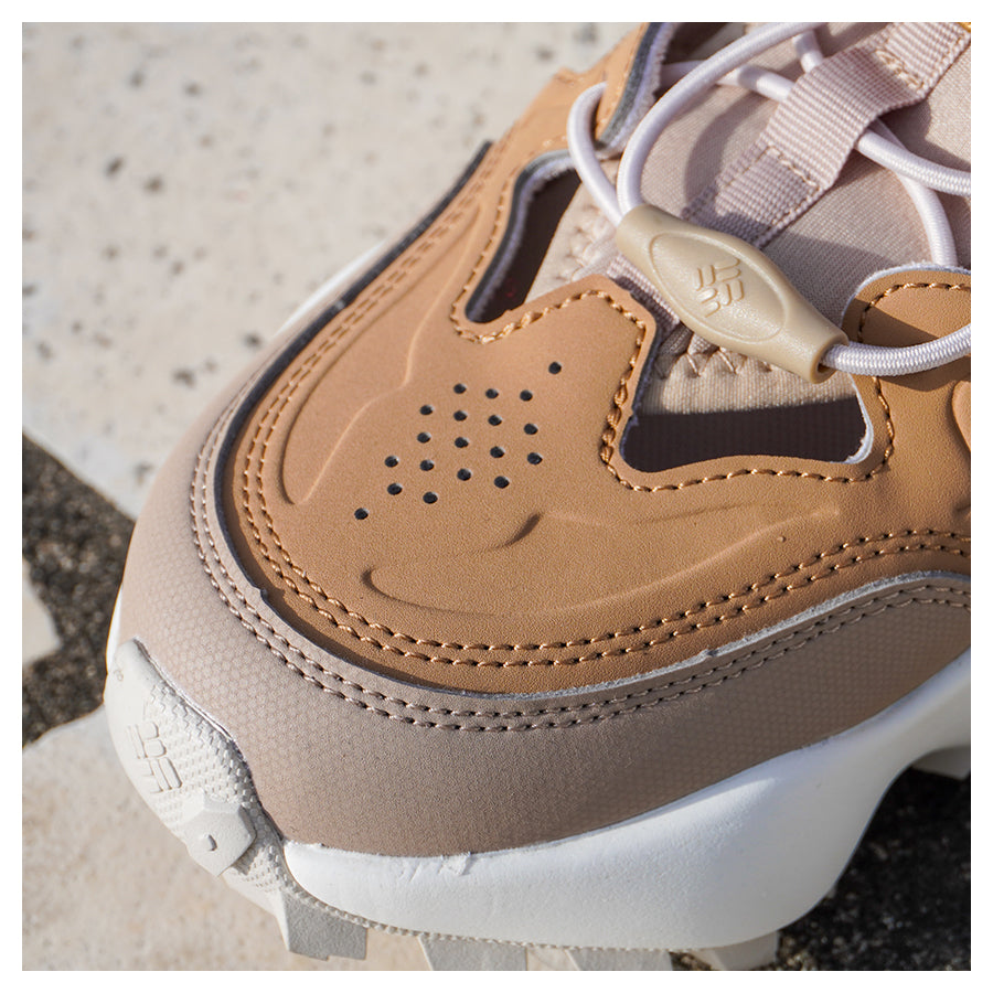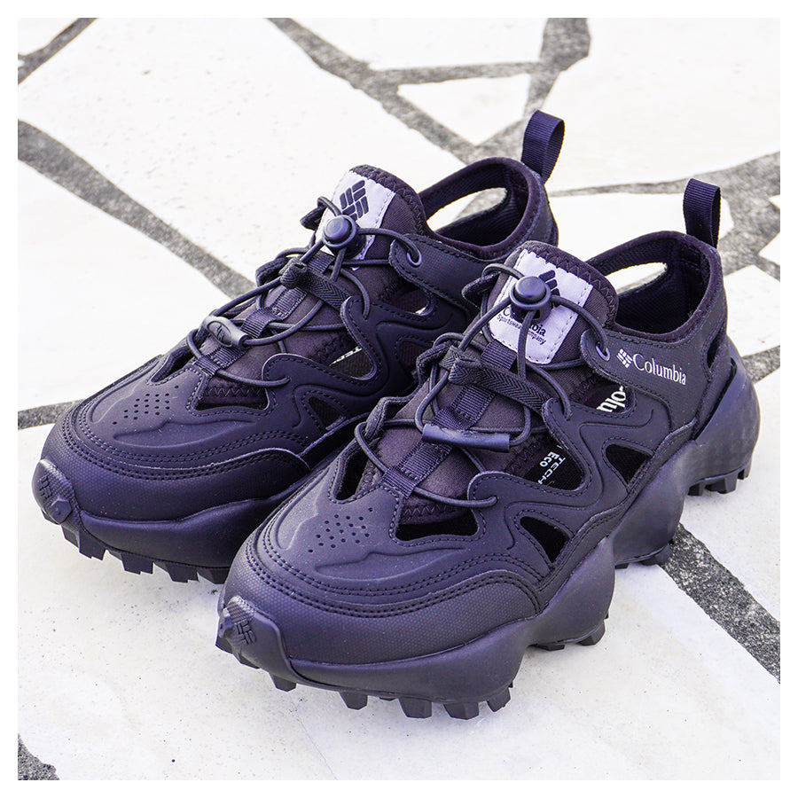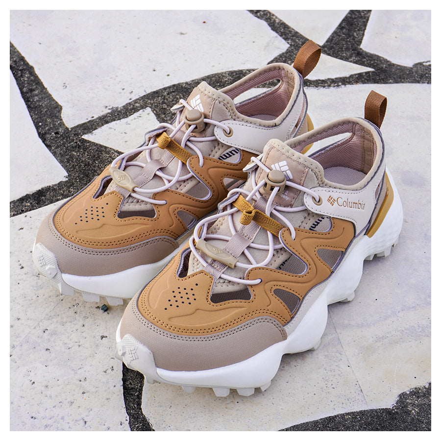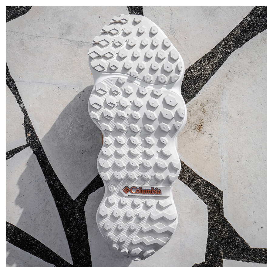 波打つような肉厚フォルムのミッドソールは、コロンビア最高峰のクッショニングを誇る「テックライトプラッシュ」を採用。長時間にわたり耐久性が持続し、足への負担を軽減しました。アウトソールは、トレイルシューズにも搭載している「アダプトトラックス」が濡れた路面や泥など、難しいコンディションでもグリップ力を発揮します。