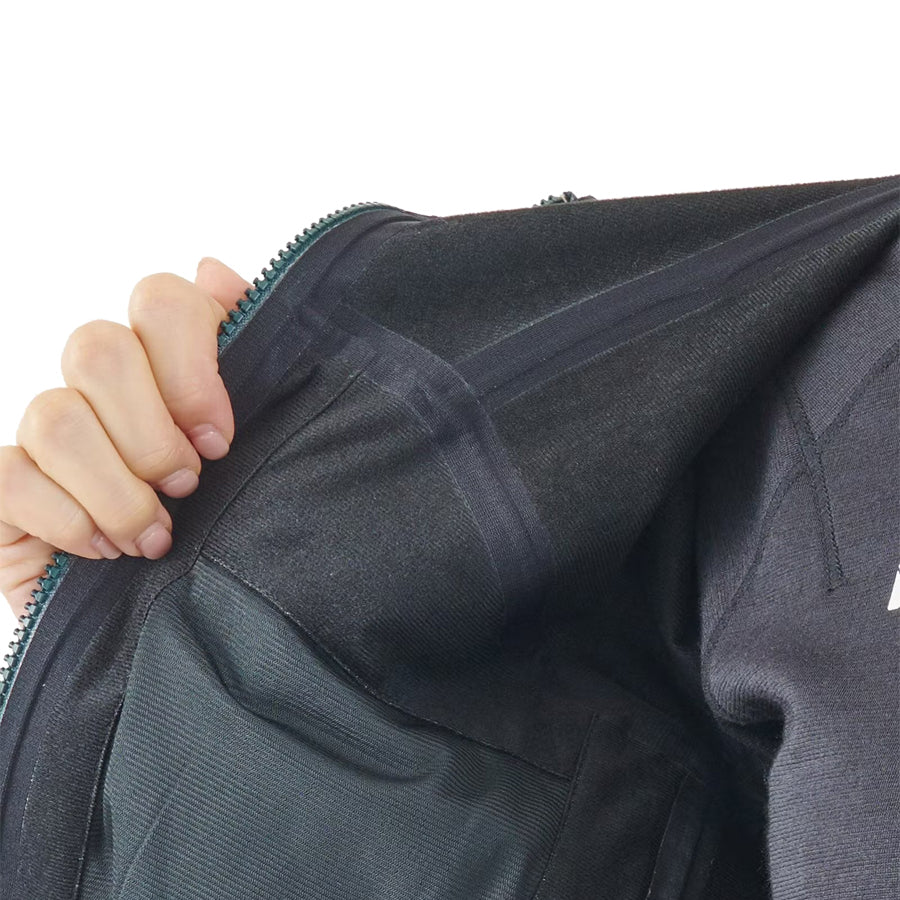 - 高い耐水圧(30,000mm)と優れた透湿性(40,000g)を両立、保温性を高める裏起毛仕様とストレッチで快適な 「ティフォンウォームNX」 素材を採用
