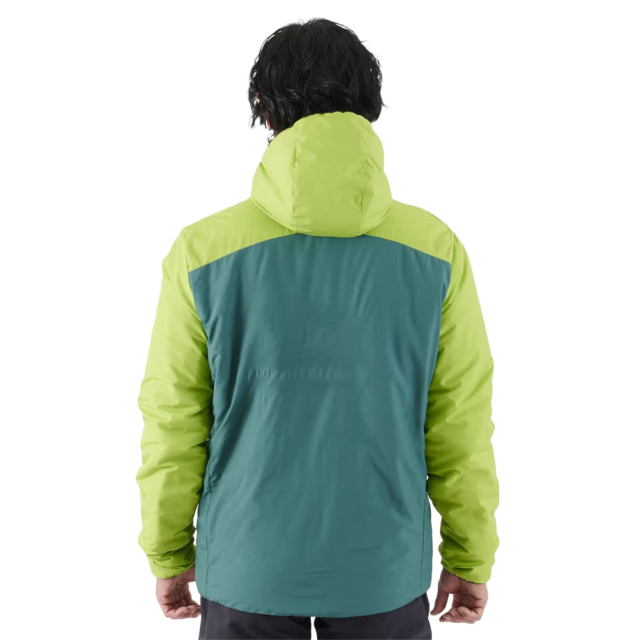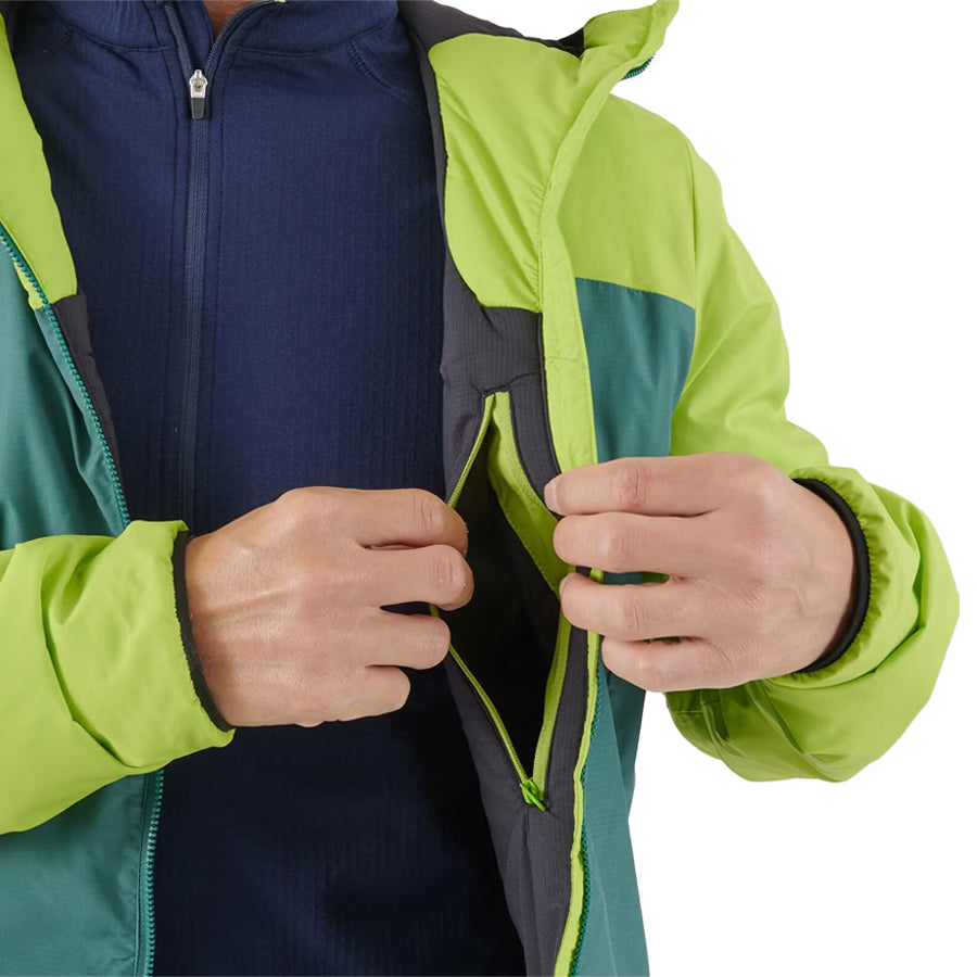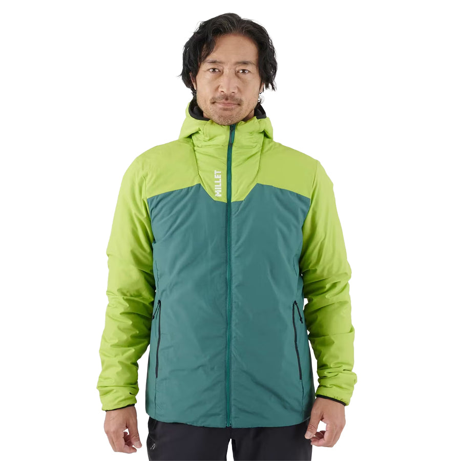 雪山登山をはじめ、冬のハードなアクティビティを想定してデザインされた軽量インシュレーションフーディ。軽量ながら高い保温性と湿気に対する強さを備えたリサイクル素材のプリマロフト®中綿を採用し、戦略的に厚みを変えて配置しています。伸縮性がありながら撥水性を備えた表地と、スリムなシルエットで体の動きを考慮した無駄のない立体裁断によって過酷な状況でのストレスのない自然な動きやすさを可能にしました。単体でアウターとして、あるいは寒い環境でのミッドレイヤーとしても着用可能です。
