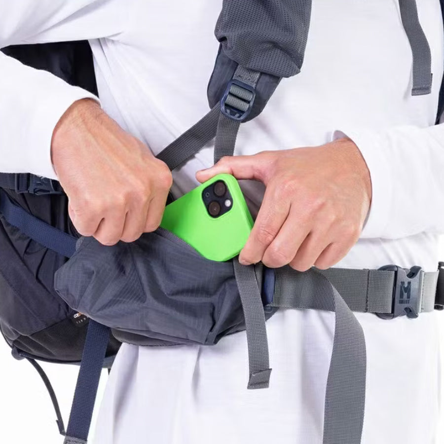 収納面でも背負ったままボトルが取り出しやすいサイドアクセスポケットや、ウェストの折りたたみ式大型フォールディングポケットなど使い勝手抜群の収納はそのままに、チェストハーネスにはボトルからスマホまで多彩な用途に利用できるメッシュポケットが新たに追加。本格登山での使用を想定しつつも、ビギナーにも使いやすい機能を備えたバックパック。