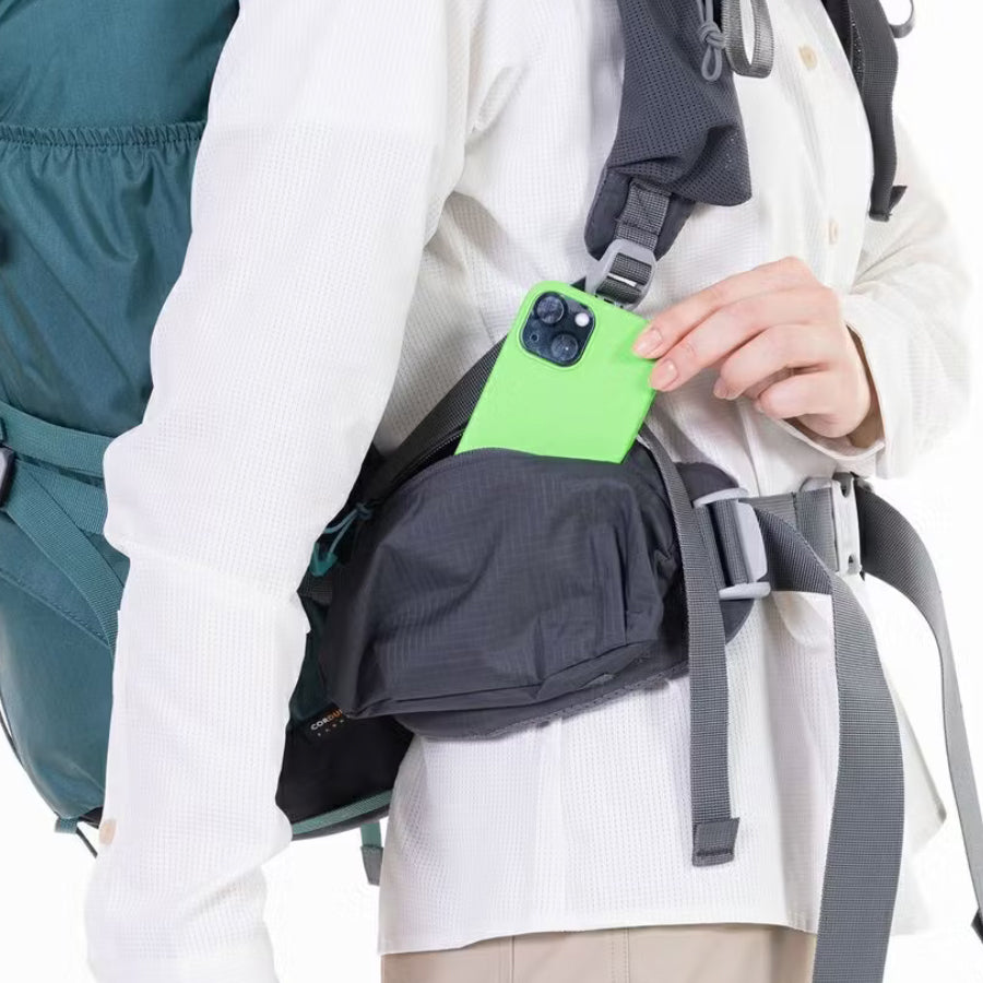 これによって荷物の量にかかわらずより重心を身体に引き寄せることができ、安定性と疲れにくさがさらに向上。収納面でも背負ったままボトルが取り出しやすいサイドアクセスポケットや、ウェストの折りたたみ式大型フォールディングポケットなど使い勝手抜群の収納はそのままに、チェストハーネスにはボトルからスマホまで多彩な用途に利用できるメッシュポケットが新たに追加。