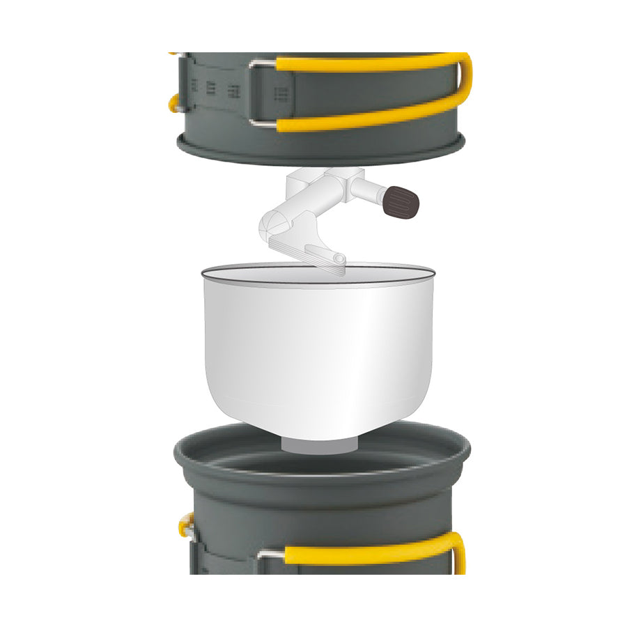 非常に軽量なアルミニウム製クッカーです。火が通りやすく、調理が素早く行えます。鍋や食器としても使用できるふたを備えた深底タイプです。収納性が高く、250サイズのガスカートリッジと小型ストーブなどを収納できます。便利な注ぎ口、熱くなりにくいハンドルなど、使いやすさにこだわっています。