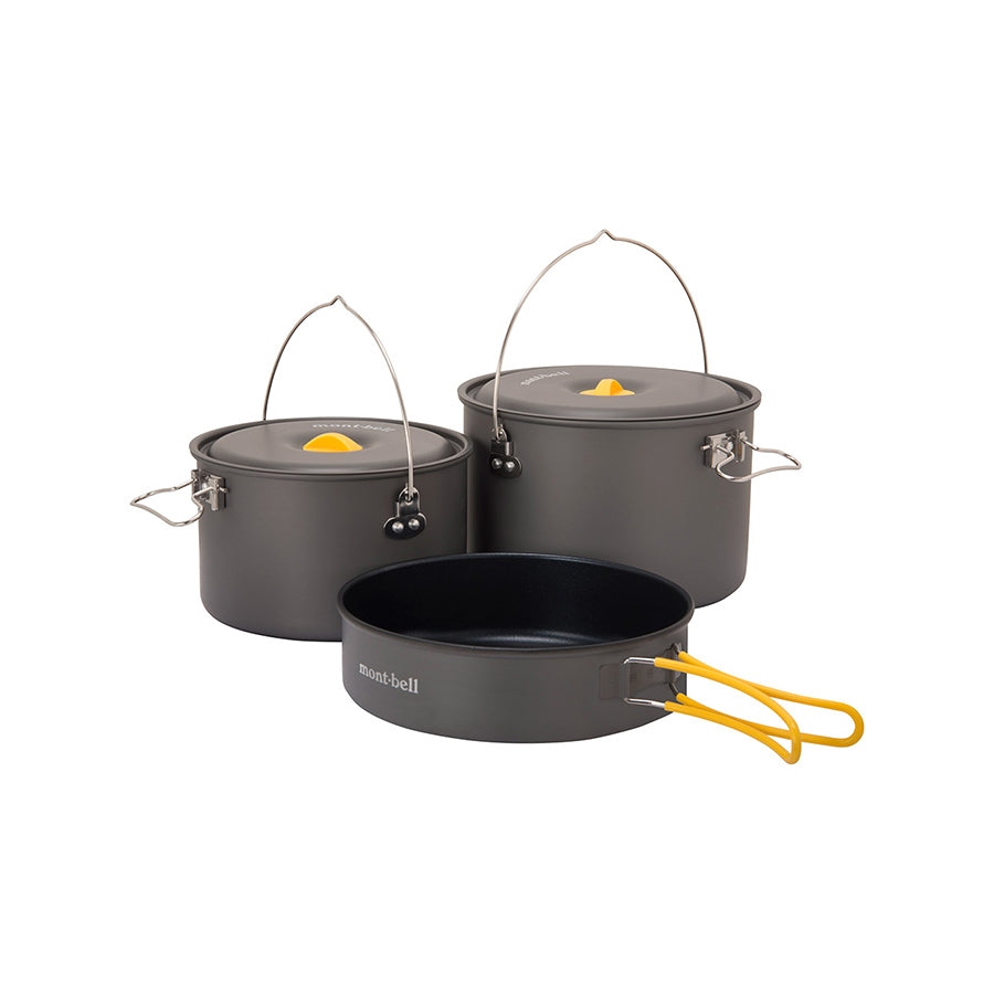 「アルパインクッカー 16」と「アルパインクッカー 18」のセットに、「アルパインフライパン 18ディープ」を付属したタイプです。重ねてコンパクトに収納することができます。