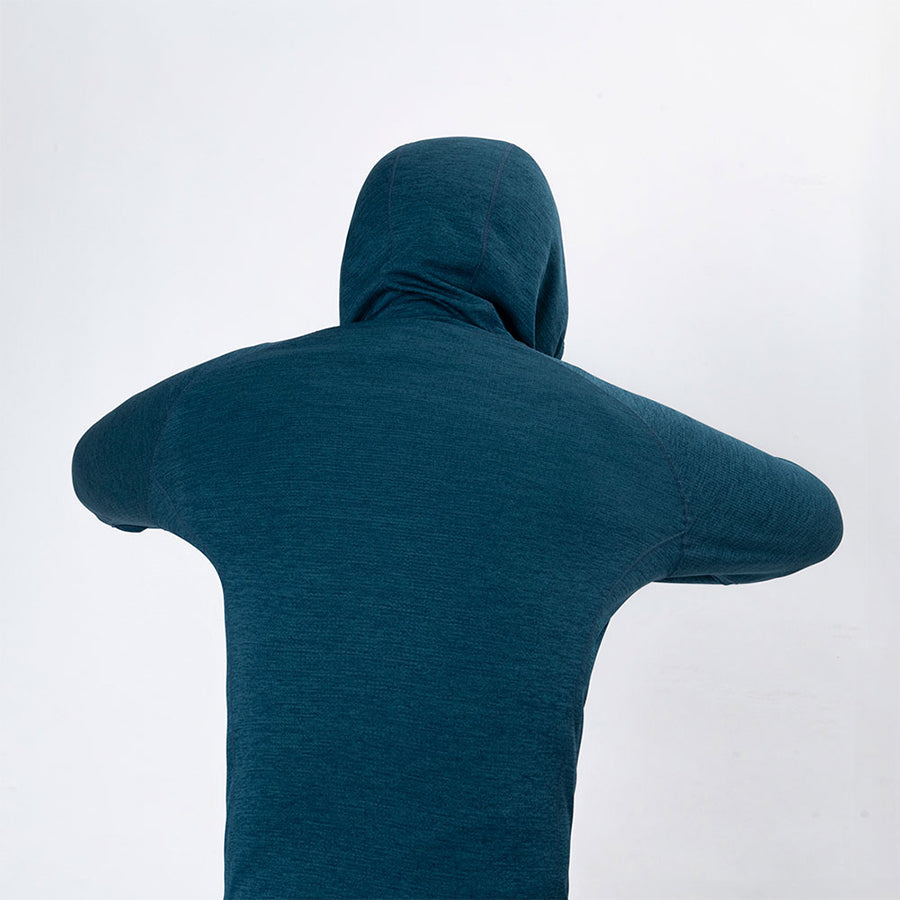 優れたストレッチ性を備え、動きやすく快適な着心地のパーカです。生地の表面は滑らかで雪がつきにくく、裏面は暖かな起毛地で保温性にも優れます。通気性もあるため蒸れにくく、冬山では中間着として、春・秋のトレッキングや夏の高山ではアウターとして、一年を通じて着用できます。