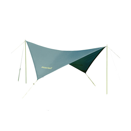 トレッキングや自転車・オートバイのソロツーリングなどにも気軽に持って行けるモンベル・タープの軽量モデル。ムーンライトテント1、2型などの小型テントと組み合わせてレイアウトするのにぴったりの大きさで、ソロユースにも十分なスペースを確保。ヘッドランプなどを反射して光る軽量で強度に優れた張り綱、軽量アルミペグ、スタッフバッグが付属します。ポールは別売です。
