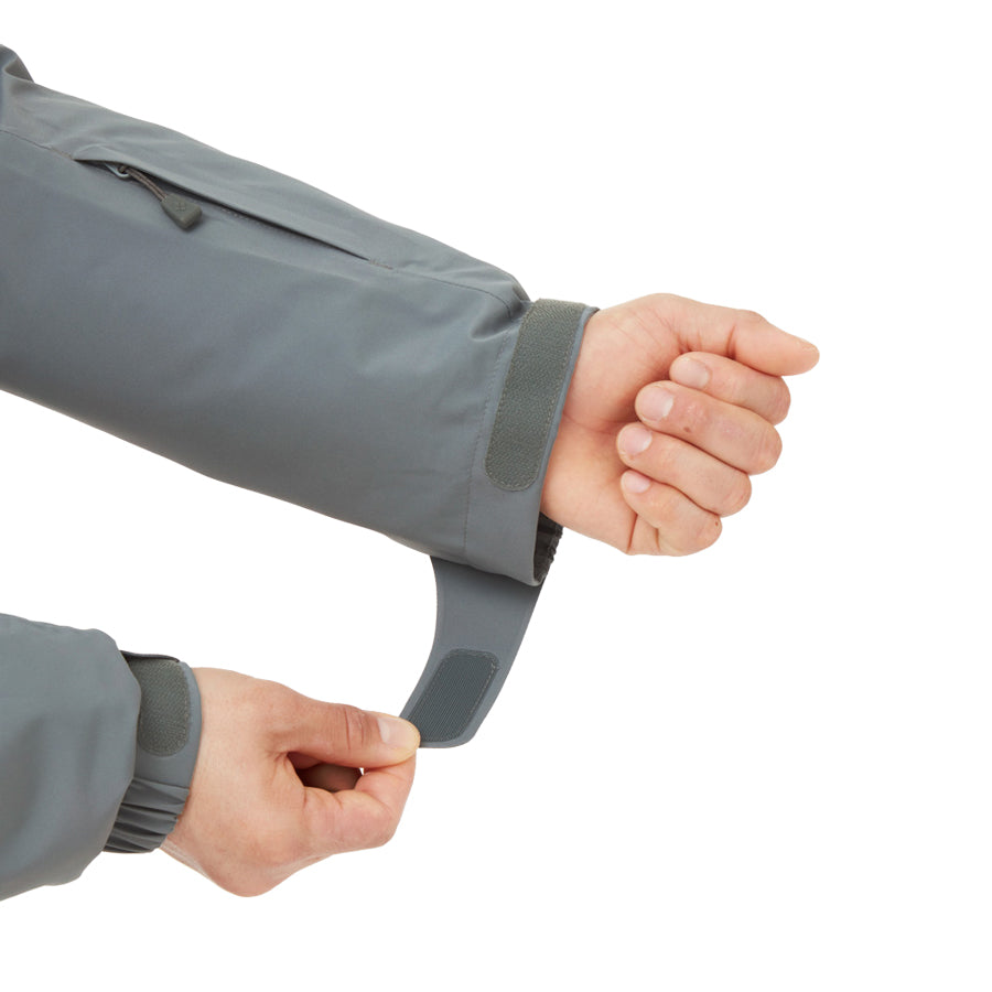 本製品は縫い目を目止め(シームテープ)処理することで身体側に水が浸入しないように設計されていますが、構造上ポケットの内部は浸水する恐れがあります。貴重品等は防水ケースに入れるなどして防水対策をしてください。