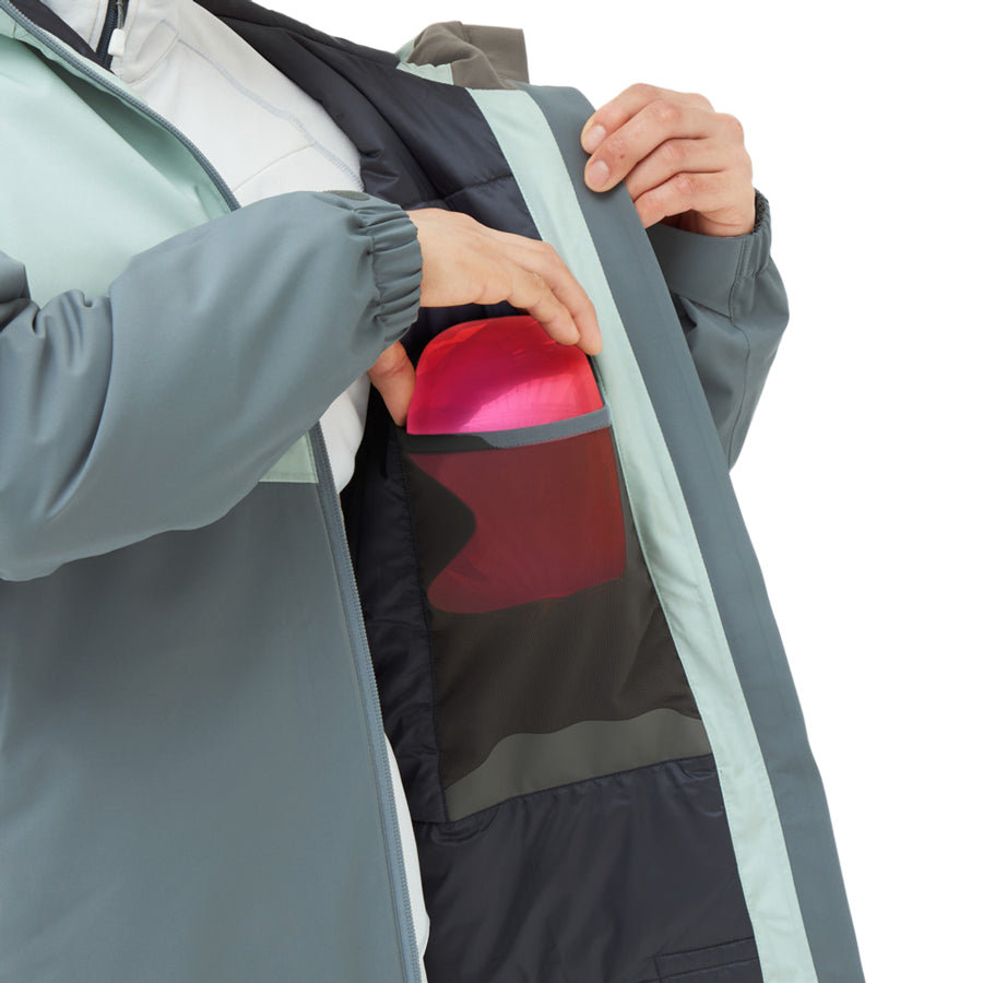 【特長】トライアクスルフード / フィット感を高める独自の立体パターン / 高めの襟元 / ジッパーが顔に当たらない仕様 / 立体裁断(肘) / アルパインカフ / アクアテクト®ジッパー / ダブルスライダージッパー / リードインコード・システム(裾)/ リフト券やICチップを入れられる左袖のポケット / スタッフバッグ付き