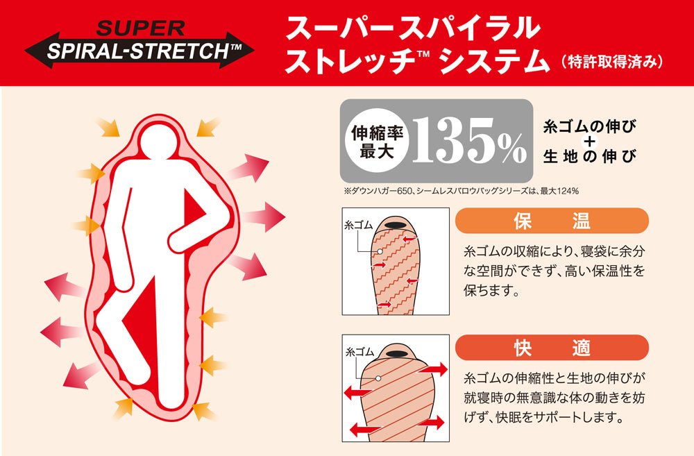 ●モンベル・スリーピングバッグ共通機能<バイアス・ストレッチ>