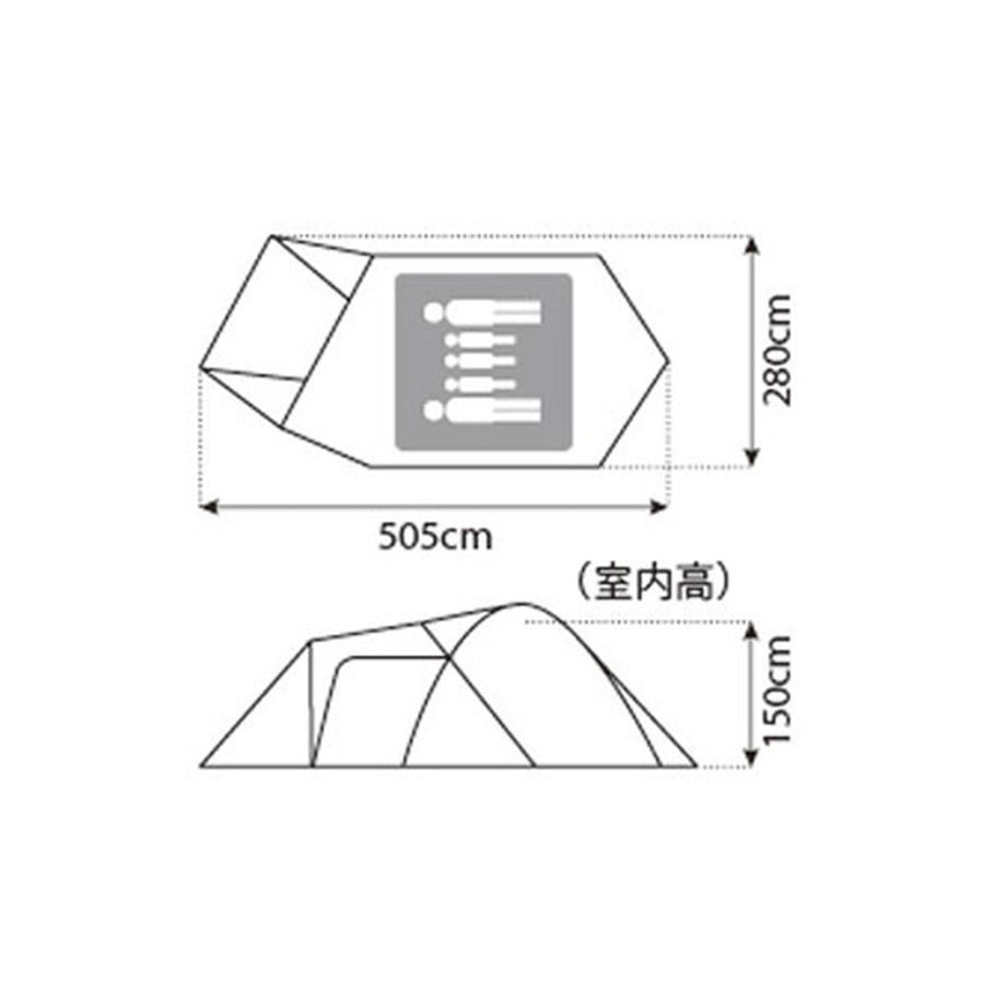 ●セット内容:フライシート、インナーテント、本体フレーム長(×3)、前室フレーム(×1)、ジュラルミンペグ(17cm×18)、自在付ロープ(二又用5m×2、2.5m×2、1.4m×2)、リペアパイプ、キャリーバッグ、フレームケース、ペグケース