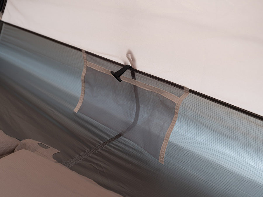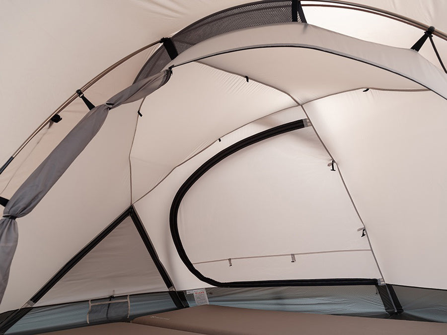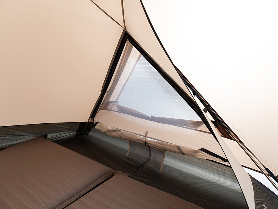 テントの生地に軽量性に優れたシリコンポリエステル生地を使用することで大幅な軽量化を実現した2名用テント。軽量化を追求しつつも、フレームには11ミリ径70001番フレームを使用することで剛性を維持しています。オートキャンプに必要な要素を高次元なバランスで、快適なデュオキャンプを実現できるテントです。同時発売のエルフィールドヘキサPro.airの生地と合わせてコーディネートすることで統一感のあるスタイリッシュなサイトレイアウトが実現できます