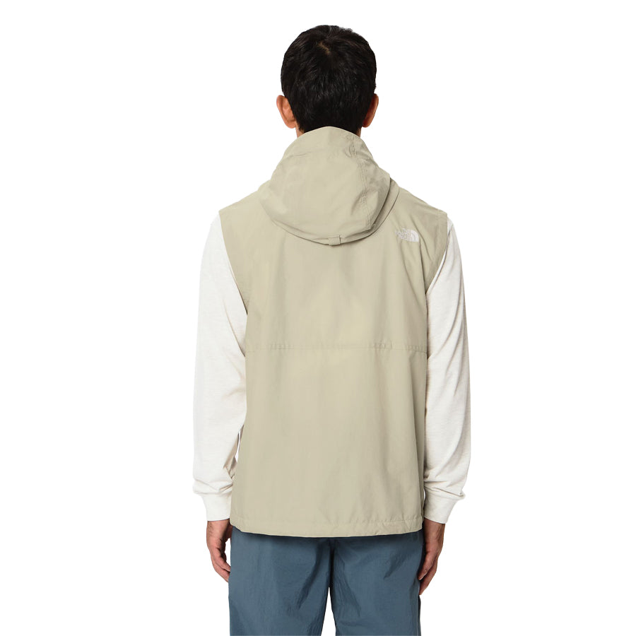 外出先での悪天候に対応できる、はっ水加工を施した軽量フード付きベスト