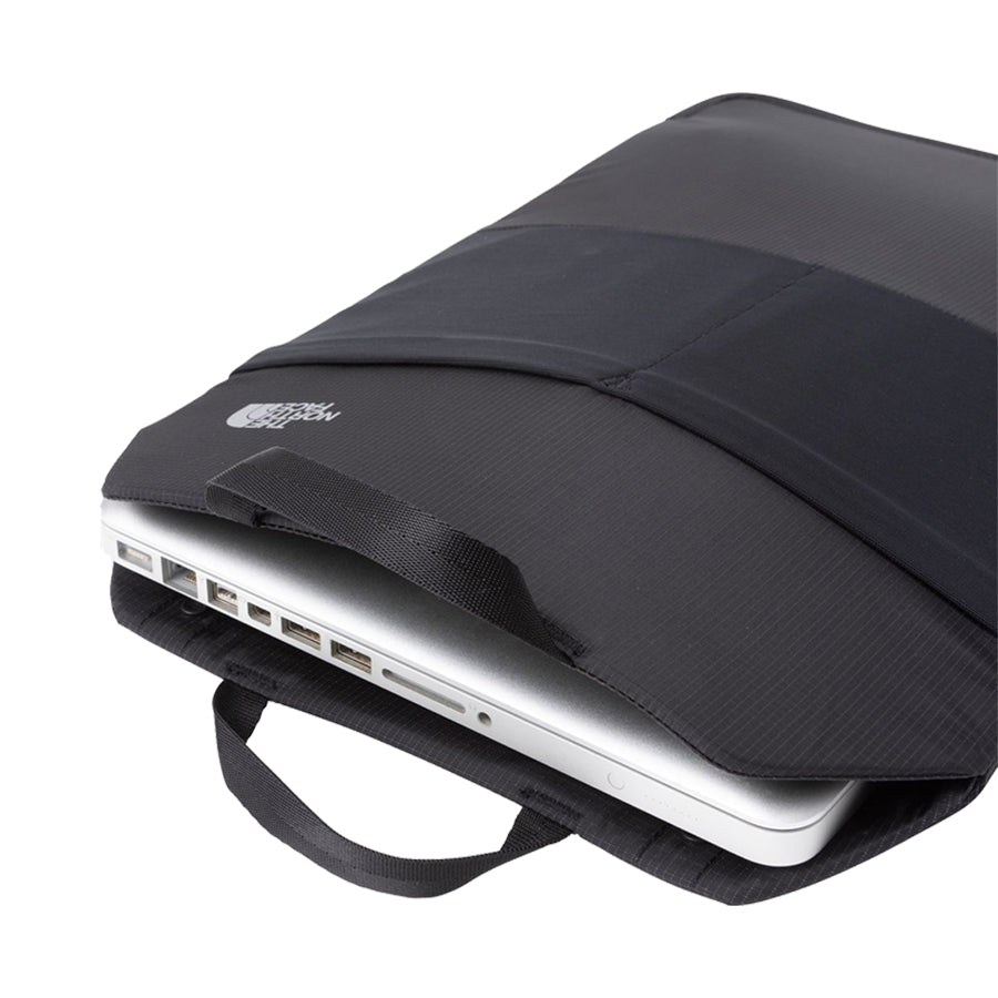 取り外して単体でも使用可能な16インチ対応PCスリーブ/耐久性と軽量性に優れた100DリサイクルROBIC素材/トートして使用時にショルダーハーネスが簡単に収納できるスリットポケット/ボトルポケット/リフレクトテープ