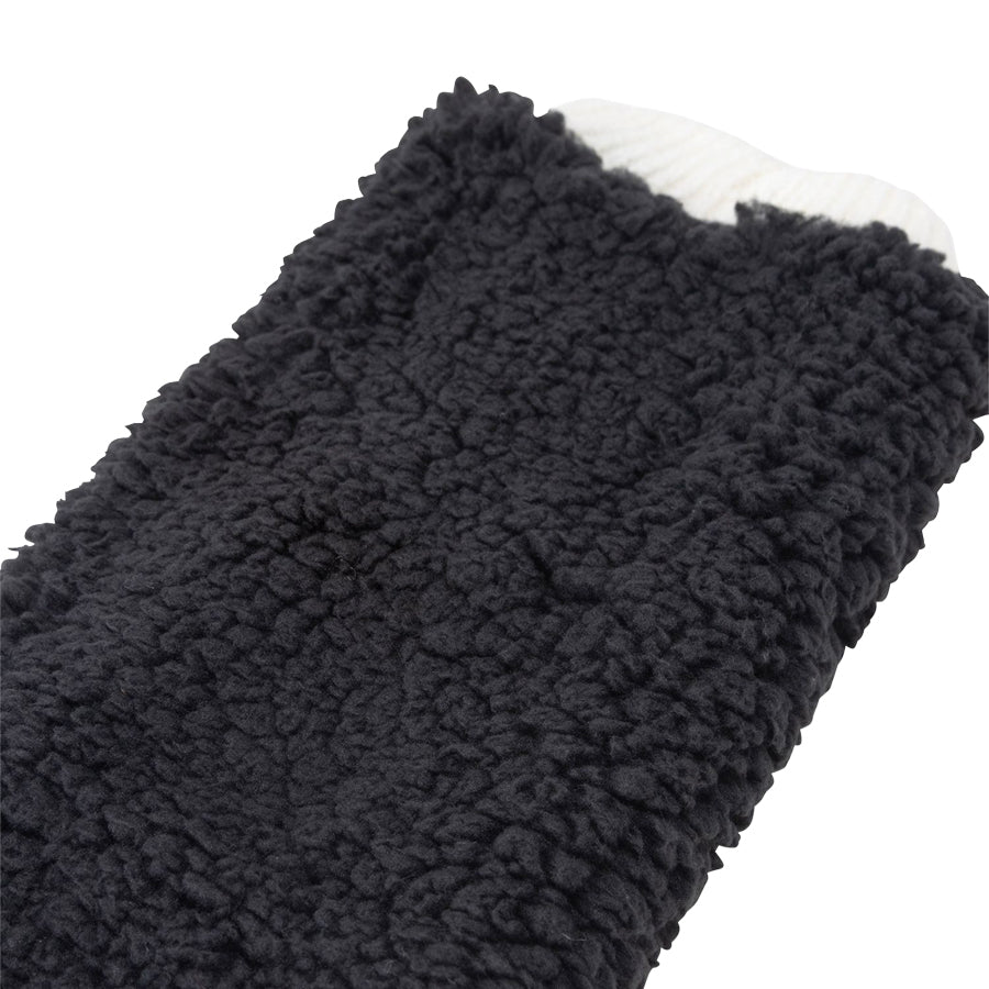 肌側に保温力が高いボアフリースを配置して、見た目にもあたたかいボリューム感。フローリングでの歩きやすさを考慮して、足裏には滑り止めのプリントを施しています。