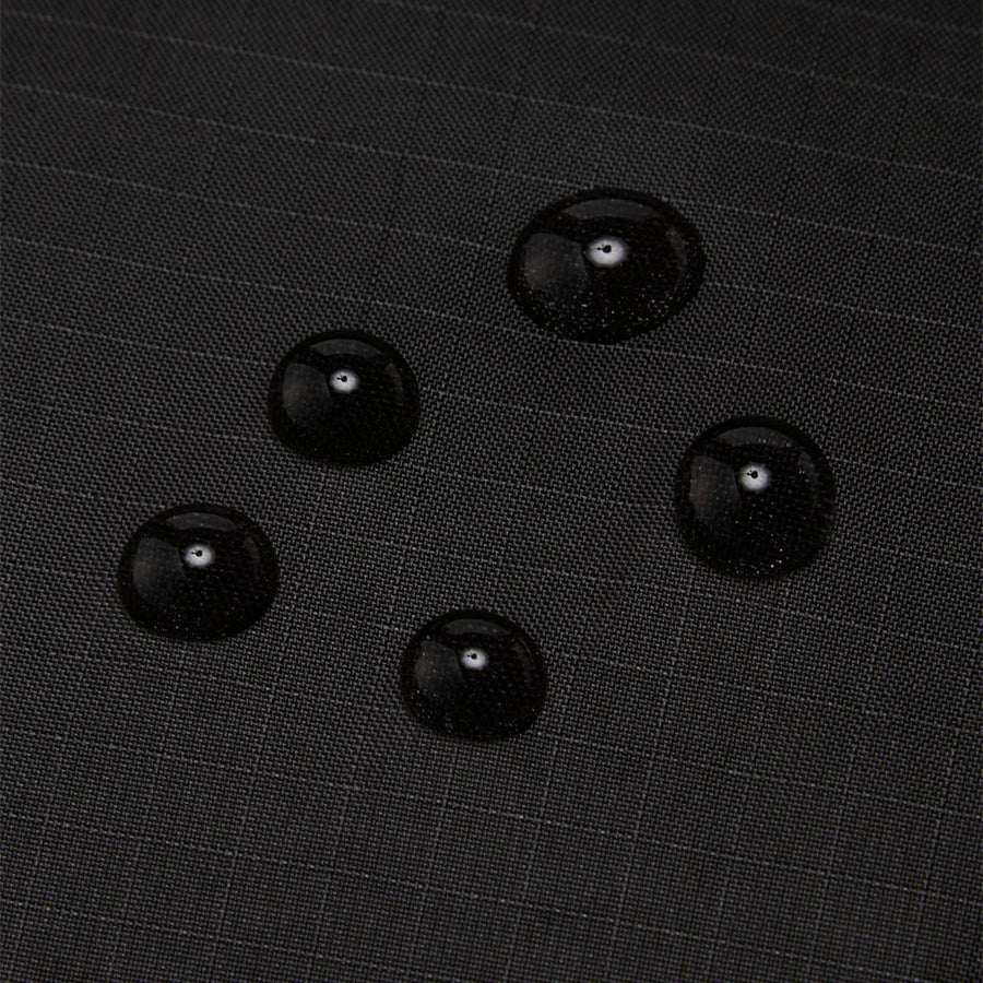 環境に配慮したリサイクルダウンを中わたの一部に使用。表地は強度がある40デニールのリップストップナイロンにはっ水加工を施し、パックに干渉する肩部分はナイロン素材で補強しています。