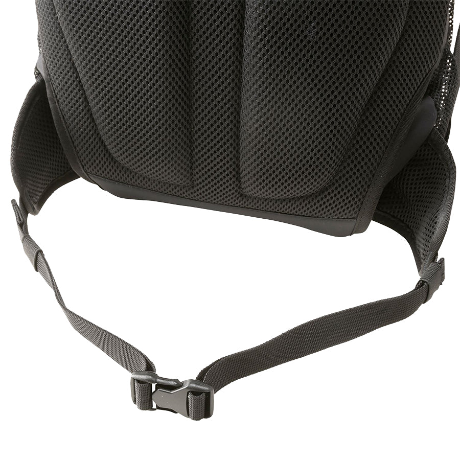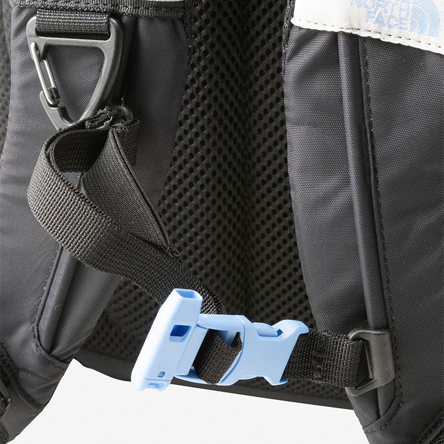 肩にフィットするショルダーハーネス/一定の荷重がかかると開放するホイッスルつきのチェストバックル/フロントファスナーポケット/本体内部にファスナーつきメッシュポケット/ショルダーハーネスにフックつきDリング/サイドメッシュポケット/本体とショルダー部分にリフレクタ―/内側にネームホルダー/収納式のウィングつきウエストベルト