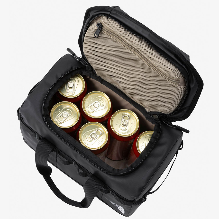 350ml缶を立てた状態で8本まで収納可能なサイズ。開口部はD字型に大きく開いて収納しやすく、ファスナーからの冷気漏れを軽減するフォームチューブを備えています。小物を連結できるデイジーチェーン、フラップ裏にファスナー付きポケットなど、収納性も多彩。