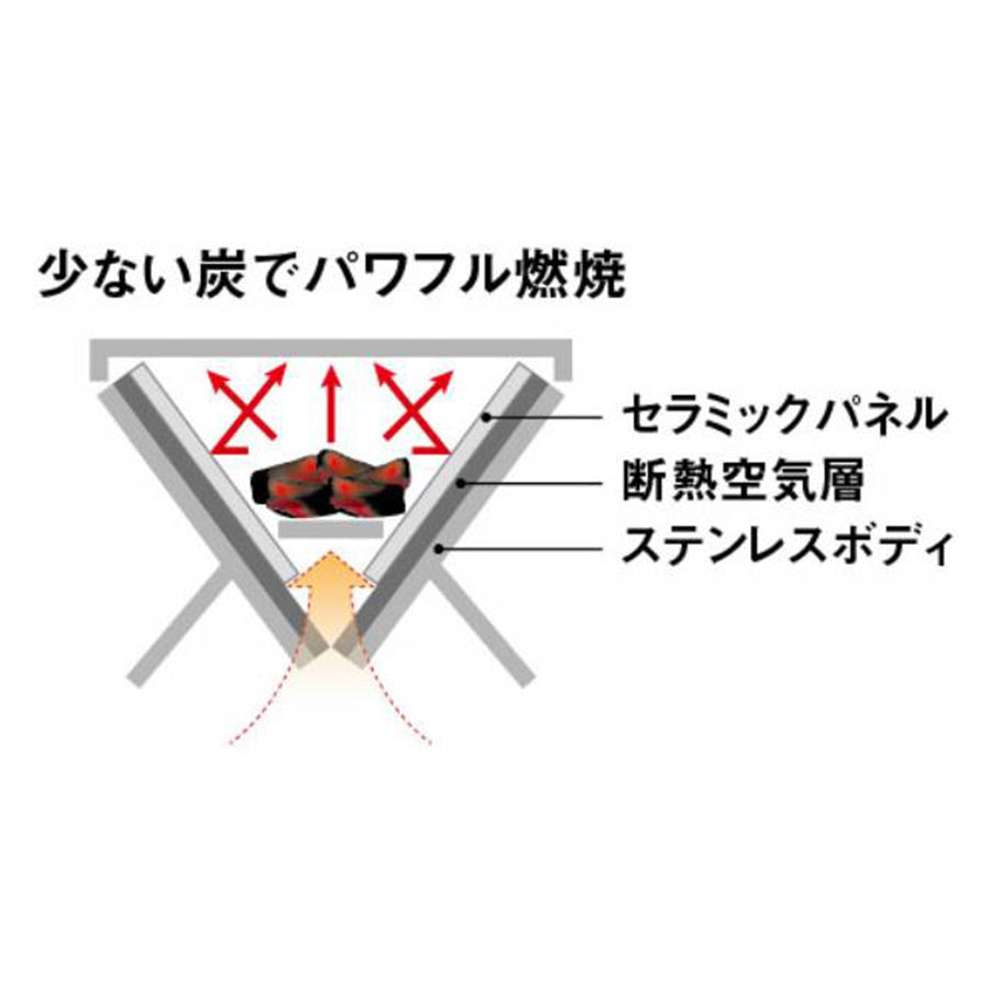 内側のセラミックパネルが熱せられることで、遠赤外線の熱を効率よく焼き網まで伝えます。